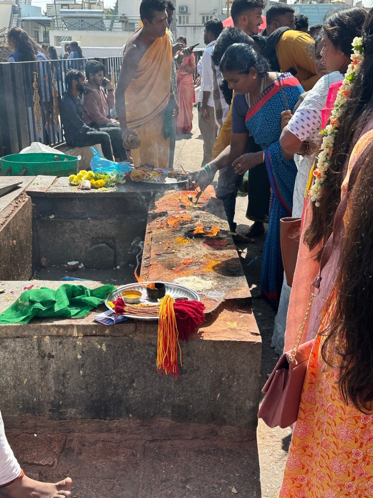 We did not go in, as there was a long queue, and you only get a seconds to see the deity if you do go in. We just observed the things that were happening outside. We did go into a temple to Vishnu which was nearby.