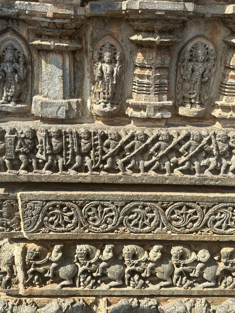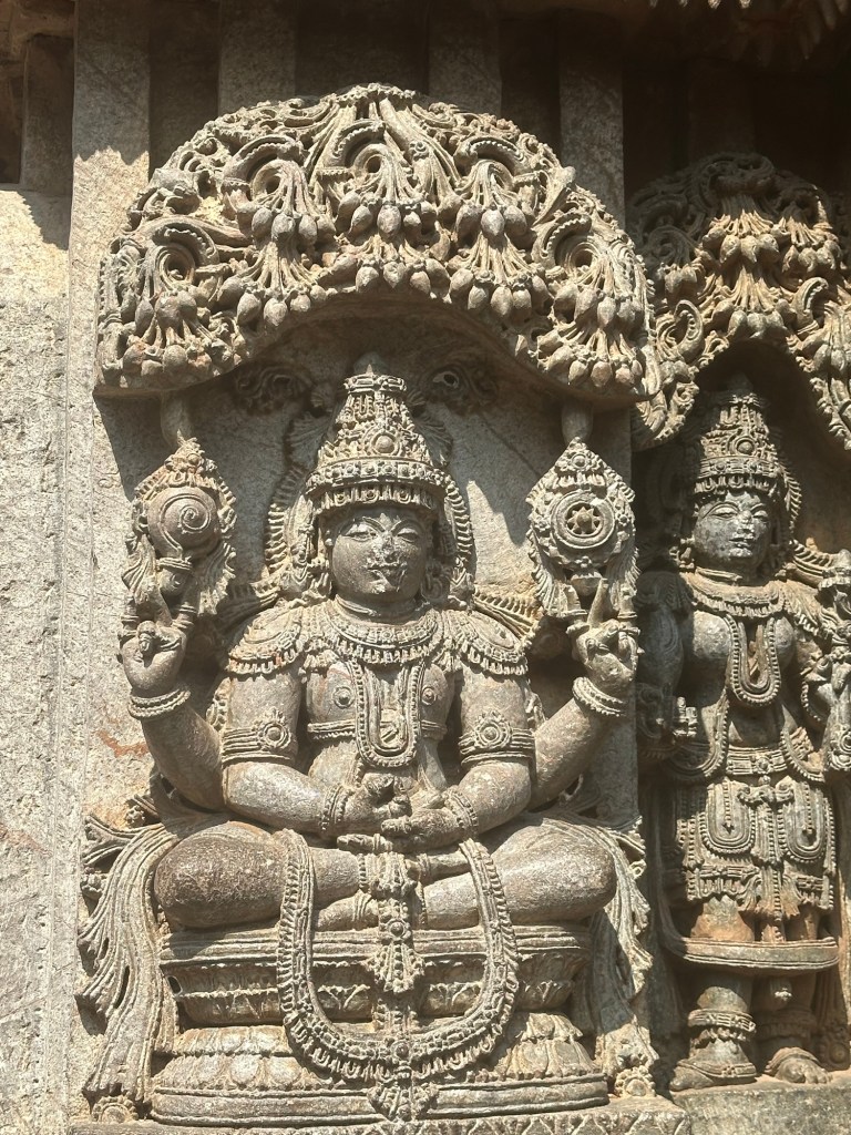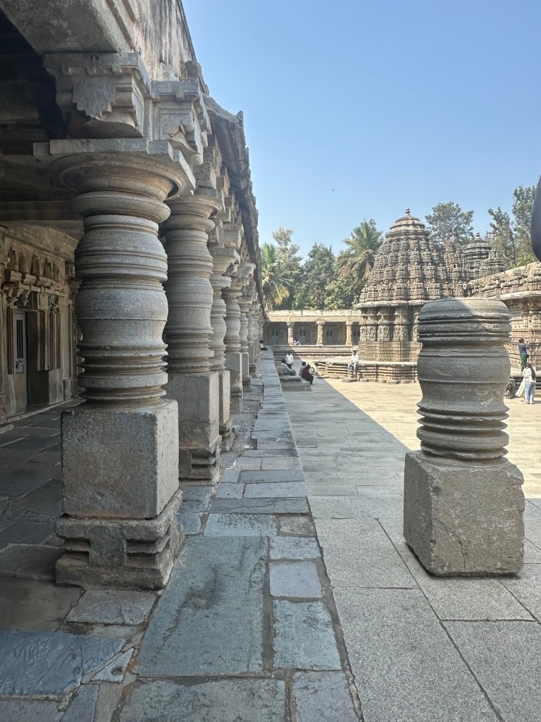 First we visited a beautiful World Heritage temple called Kesheva. Really amazing. Dating from 1268, it has 3 separate temple spaces, one each for the main Hindu gods. Incredible carvings everywhere. It is made of soapstone.