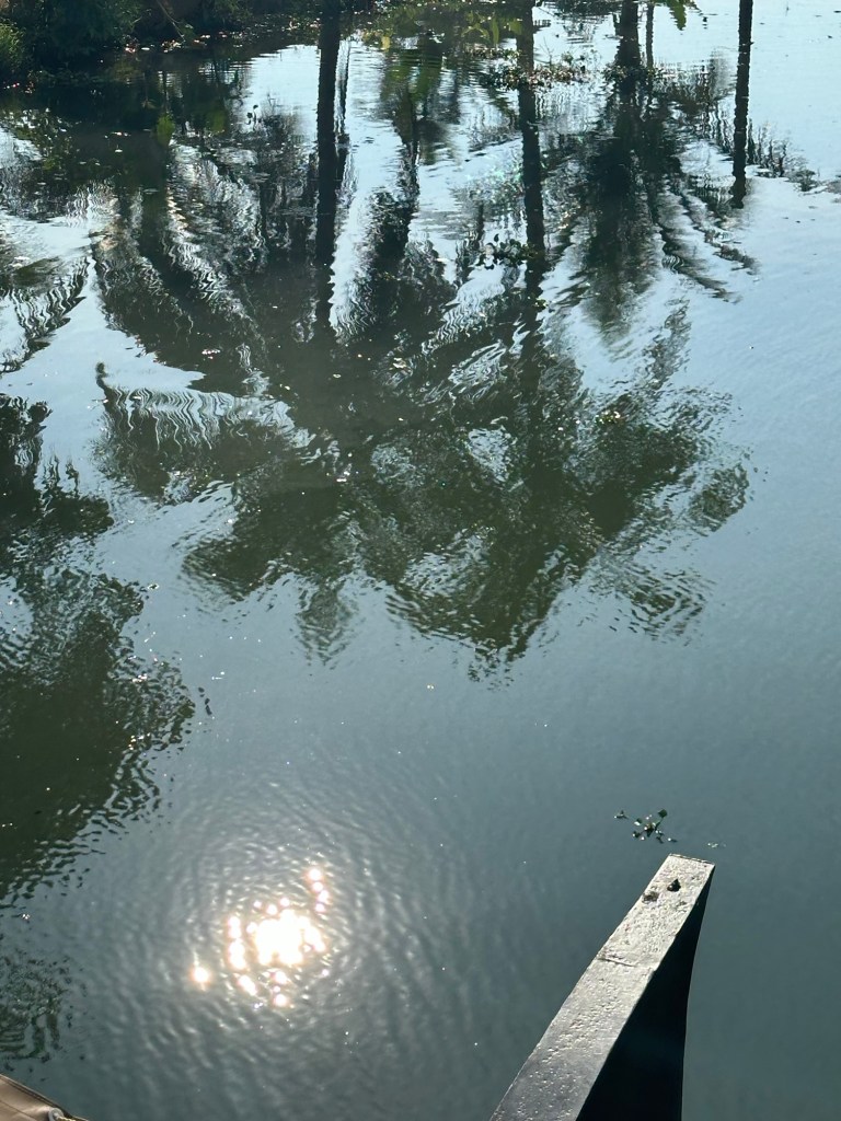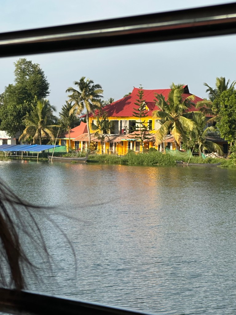 We left the guesthouse at 9, by boat. We sat in beautiful cane chairs and motored down the canal for an hour to reach Aleppy.