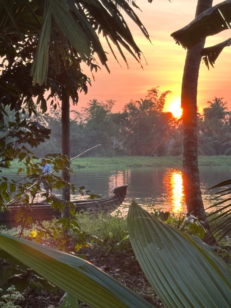 The scenery included rubber and pineapple plantations. Very spectacular. Eventually came in sight of the Kerala Backwaters, all wetlands and islands.