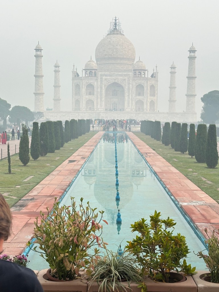 We were up very early to queue up for the 6.10am opening of gates of the Taj Mahal. The idea is to be there when the sun rises. There was a thick blanket of fog which made things slightly surreal.