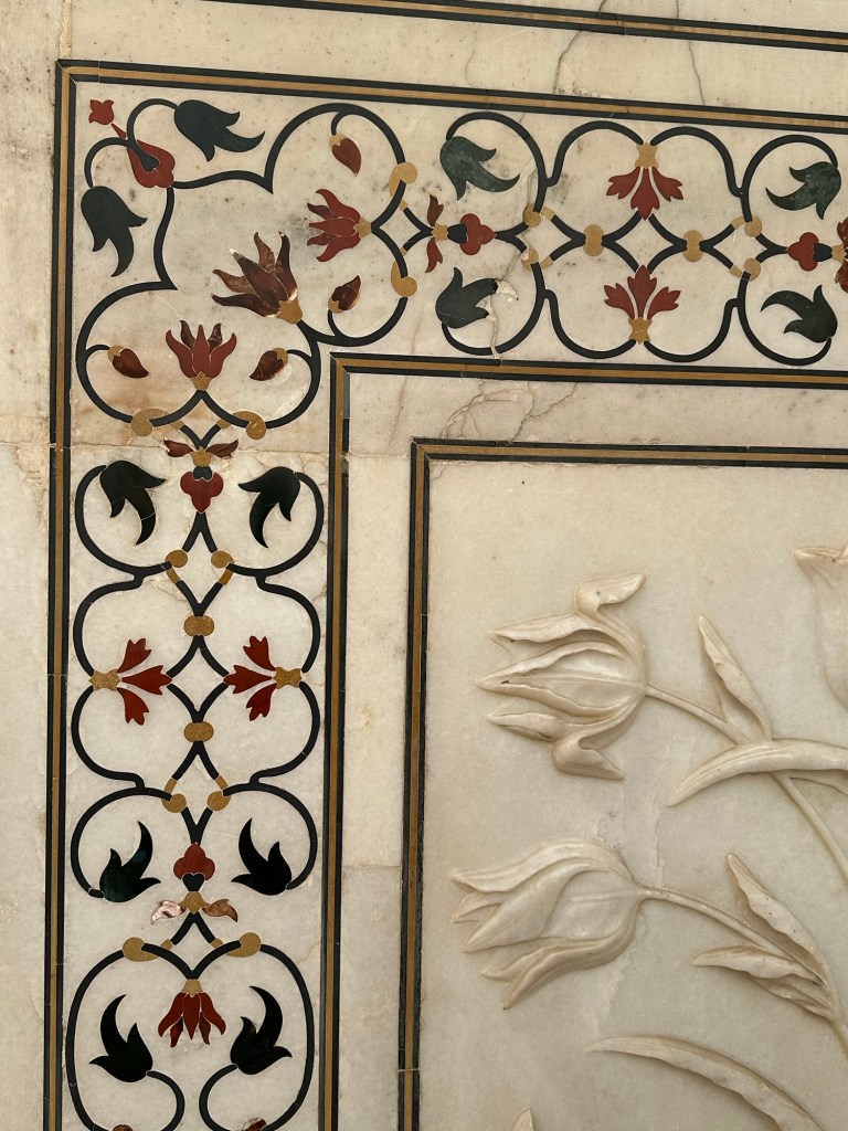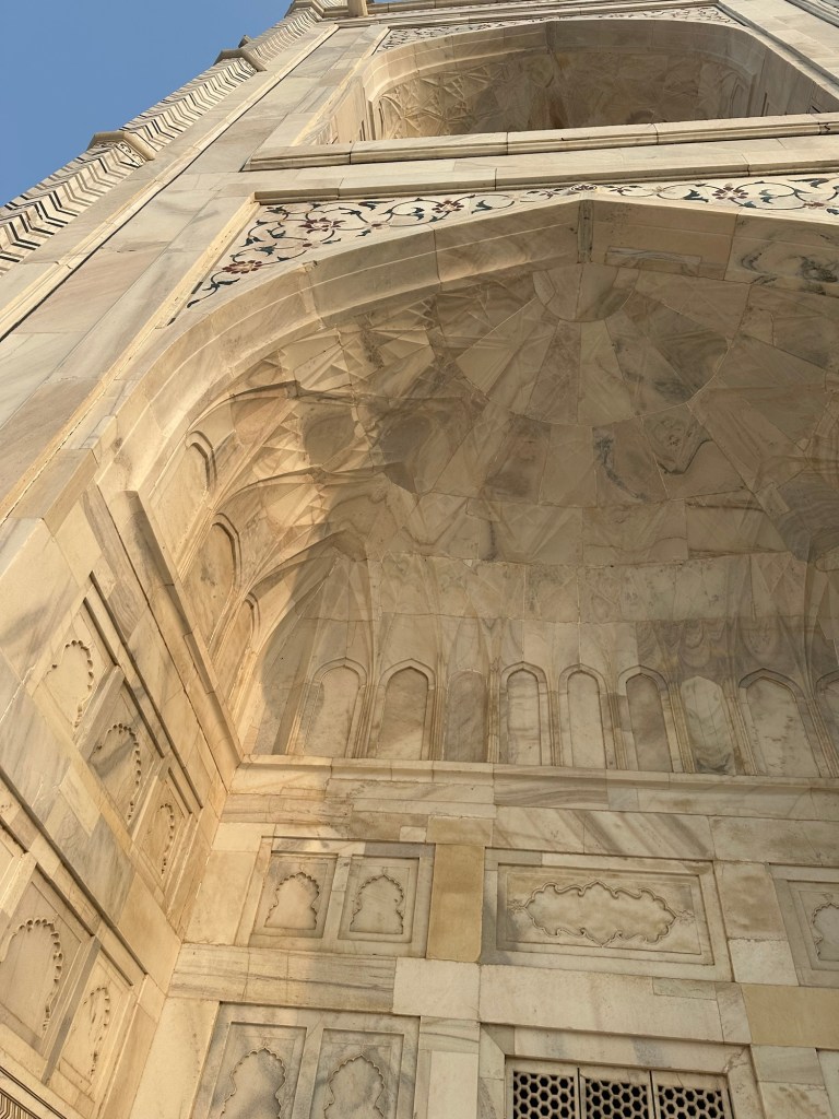 I don’t know how to describe what we saw. Surely the most incredible building anywhere. So much more than you have ever imagined. From a distance it appears gleaming white, but it is actually a soft pale greyish marble, carved everywhere with intricate patterns and inlaid with brilliant colours. Perfectly symmetrical apart from the tomb of Shah Jehan, which added as an afterthought. Let the pictures tell the story….