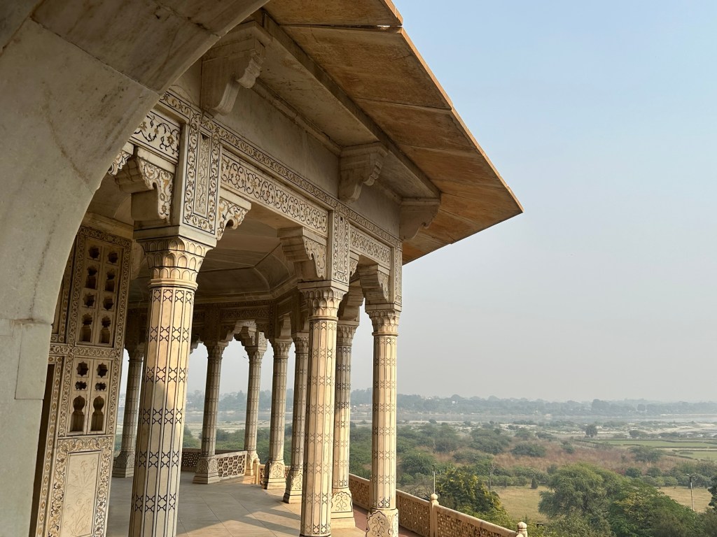 Shah Jehan built this fort after his beloved wife Mumtaz Mahal was buried in the Taj. Unfortunately his son and heir turned on him, and kept him under house arrest in the Red Fort for 8 years prior to death, so that he could rule in his stead. He was imprisoned in the beautiful wind palace.