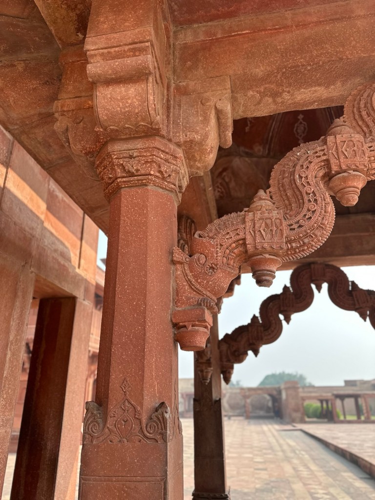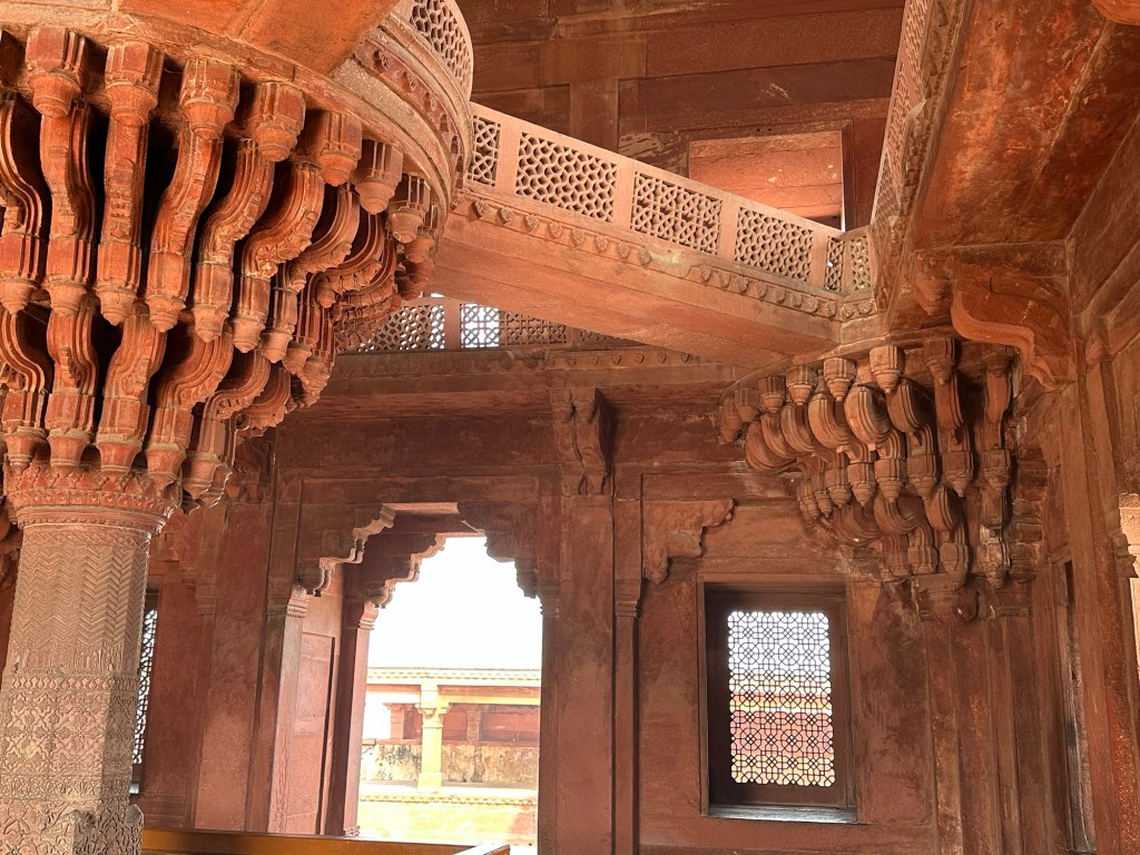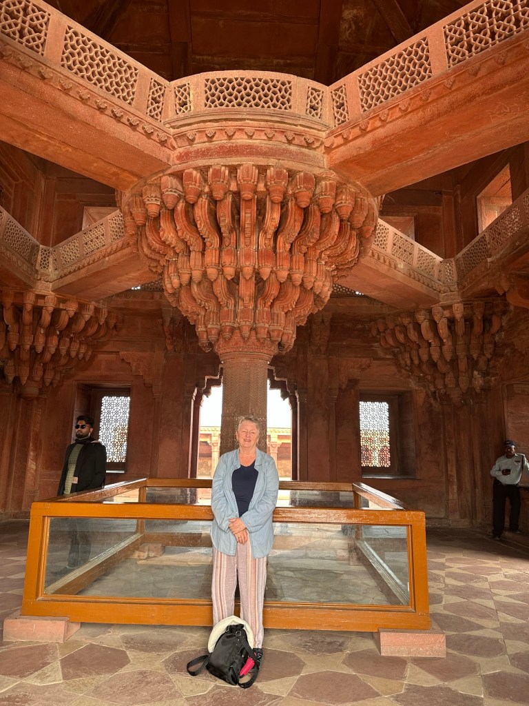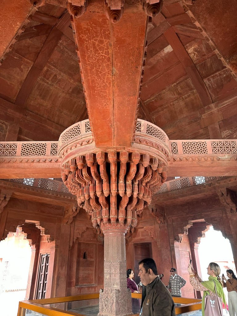 Akbar’s council chamber was one of the most stunning rooms I have ever been in. It has a column in the centre which he used to sit on, with his ministers around him. The room was designed so that they could see out but no-one could see in. Akbar was quite enlightened in some ways. He was 13 when he acceded to the throne, and always asked his elders (across a range of religions) for advice.