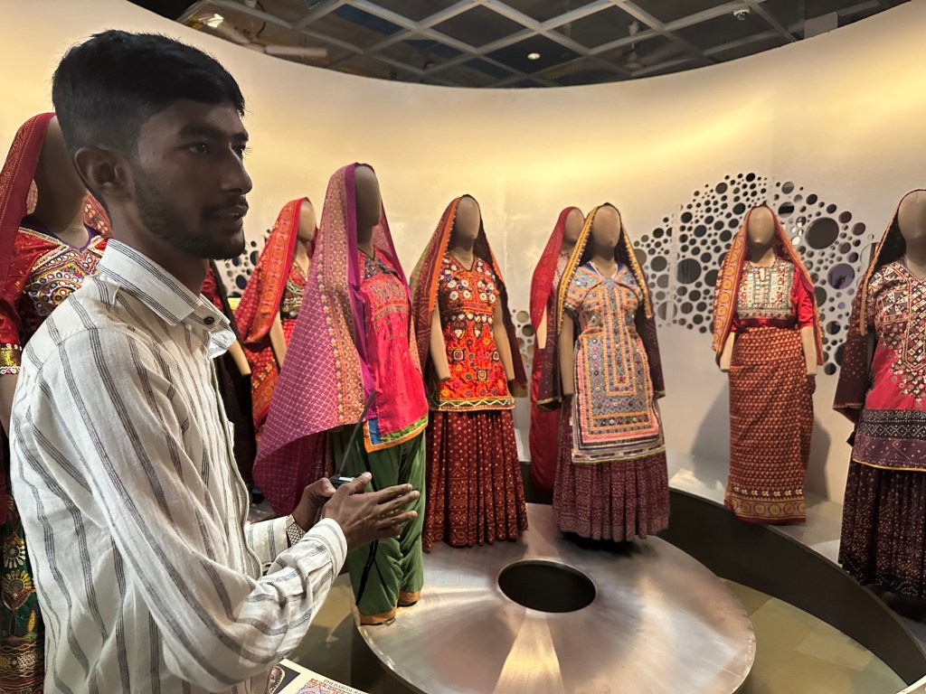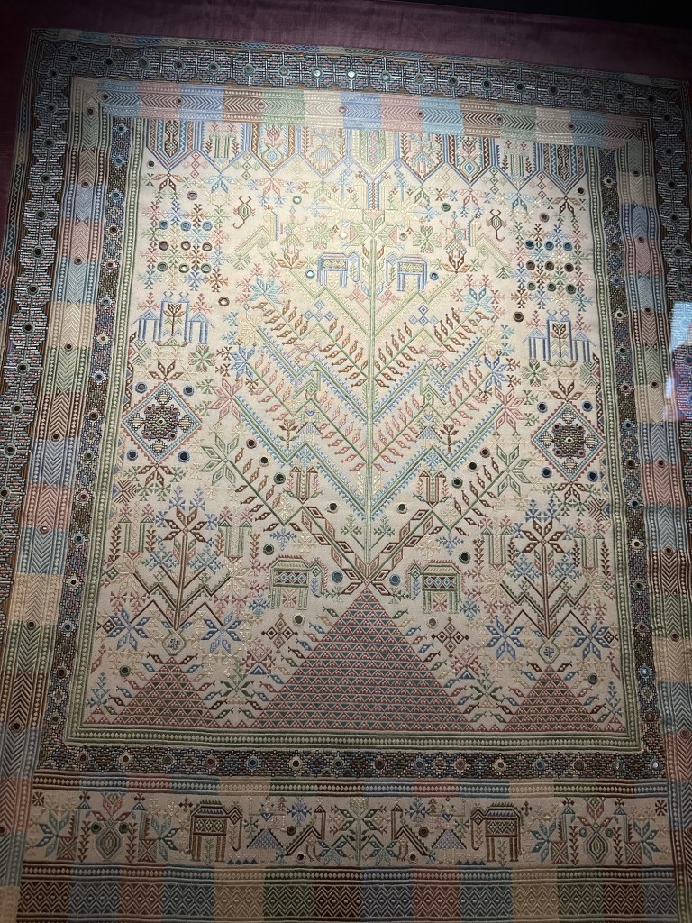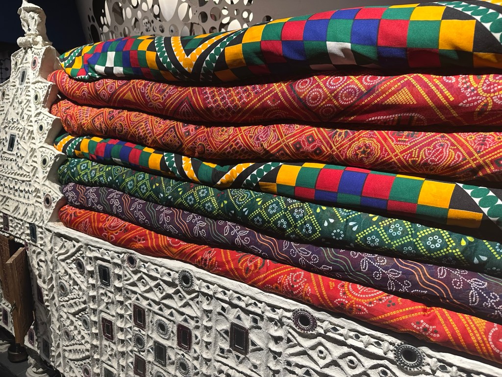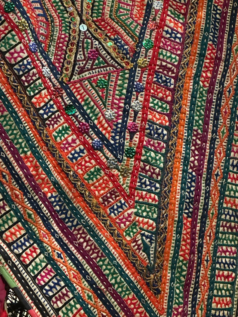 Later we went to a museum complex called the Living and Learning Design Centre, where the textile arts of Kutch are being preserved. Focussing on the almost-lost embroidery skills of the 12 tribes in the region, this place aims to showcase, preserve and teach skills. They also work with designers to find modern ways of using the old skills. A sample of the things we saw….
