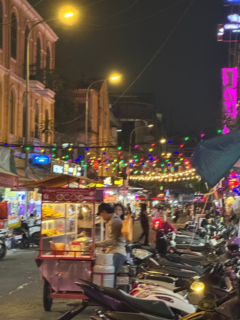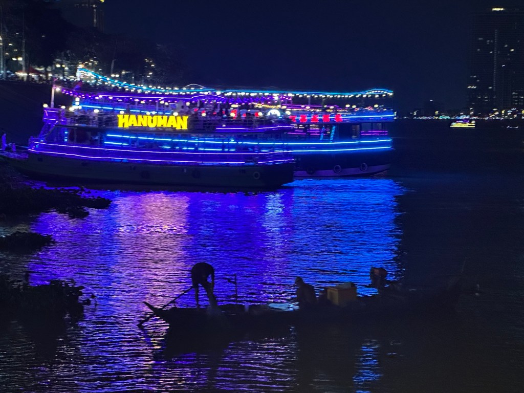 In the early evening, we went on a cruise on the Mekong. Had a few drinks (mine was a blue margarita) and looked at the city from the river. It was cool and pleasant, and was the change of pace we needed.