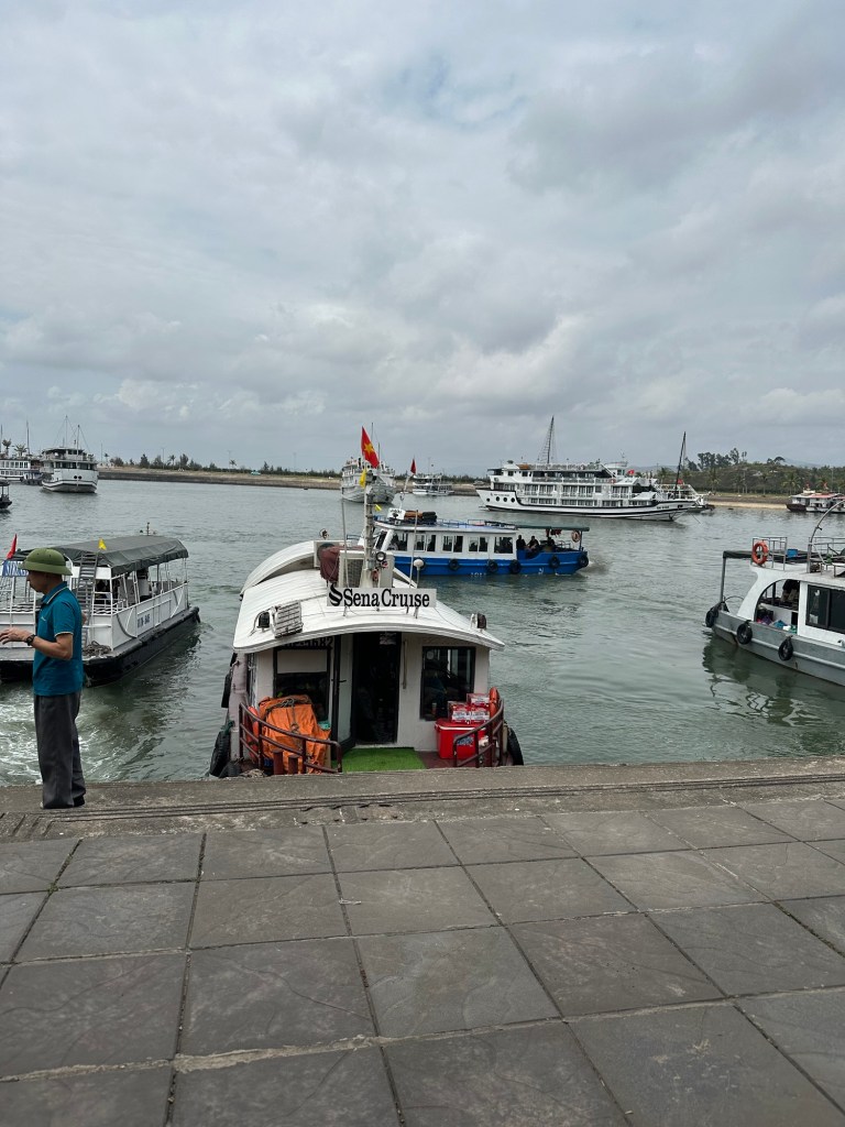 We left Tam Coc and travelled by bus for about 4 hours. Lots of rice fields, and we finally got to see some of the enormous factories Vietnam is famous for. We were basically following the Red River down to its delta, so there is a lot of manufacturing here taking advantage of the shipping. Ports and container terminals.