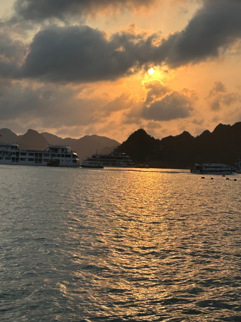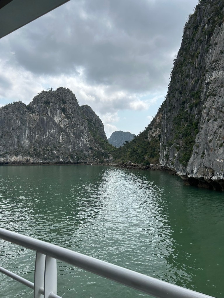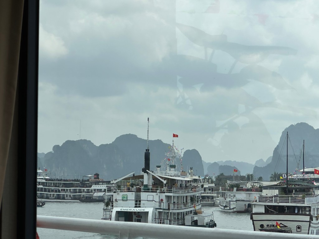 We are staying aboard the Halong Secret for one day. The bay is amazing, with weird limestone cliffs and islands everywhere. Also tourists.